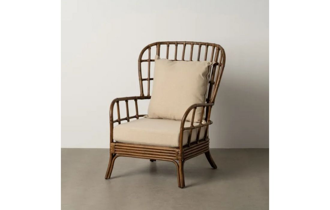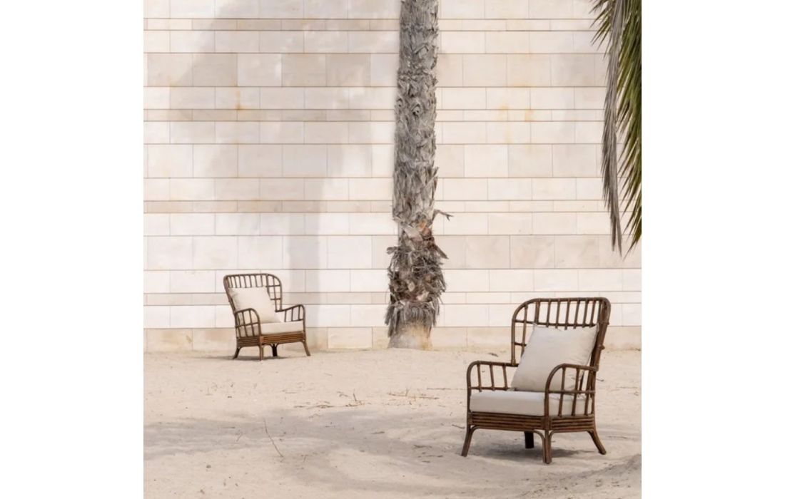 Poltrona fabricada em rattan e o seu assento estofado em tecidoDestinatário :