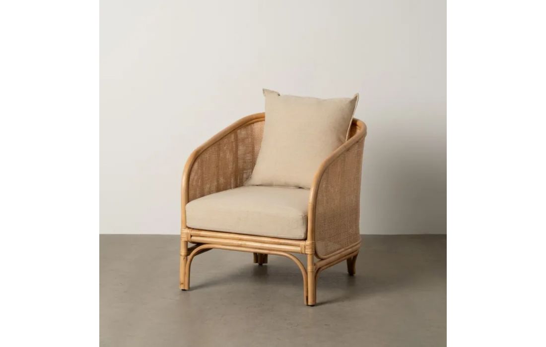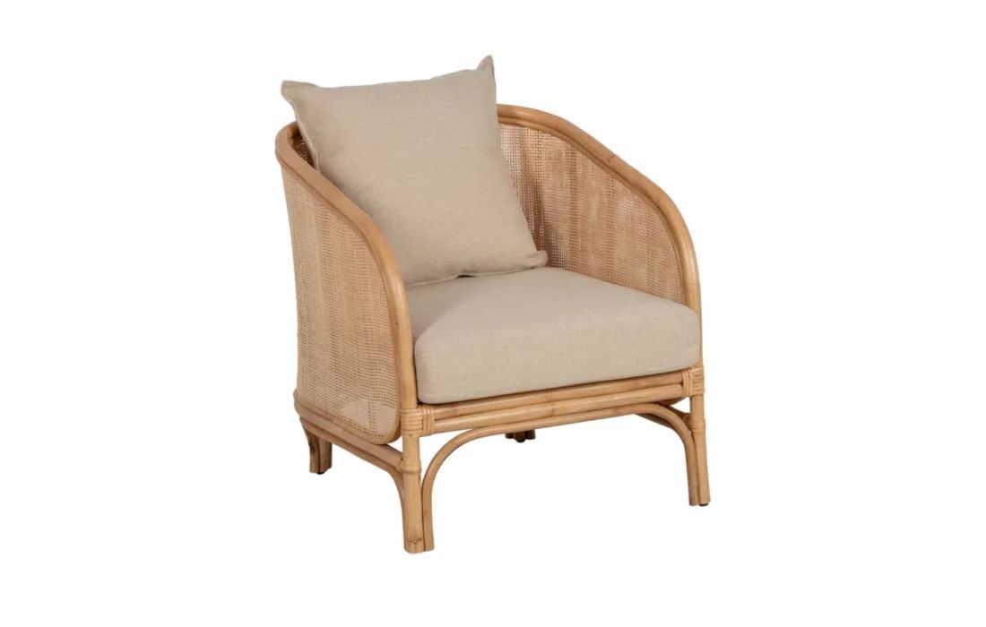 Poltrona fabricada em palhinha e o seu assento estofado em tecidoDestinatário :