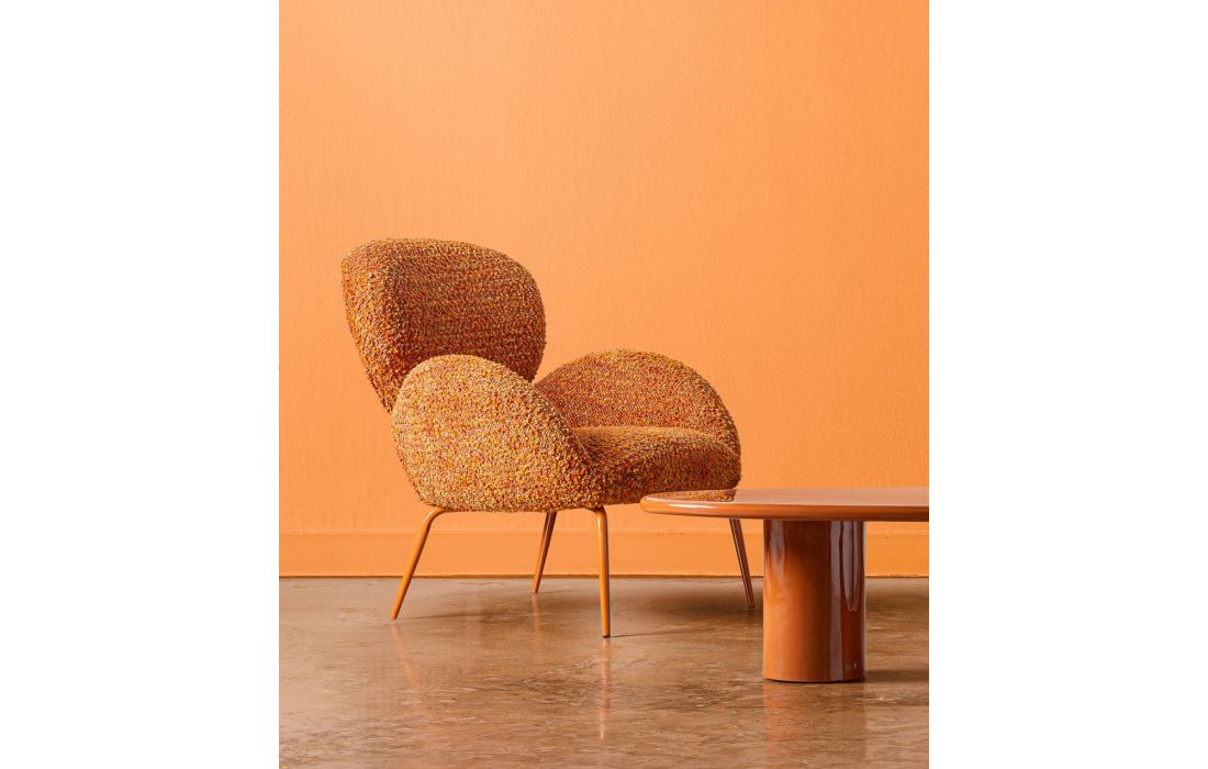 Cadeirão com design acolhedor e envolvente, estofado em tecido e pernas em ferroDestinatário :