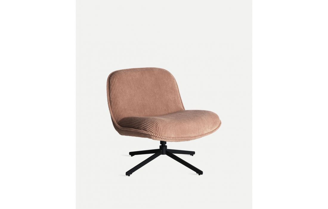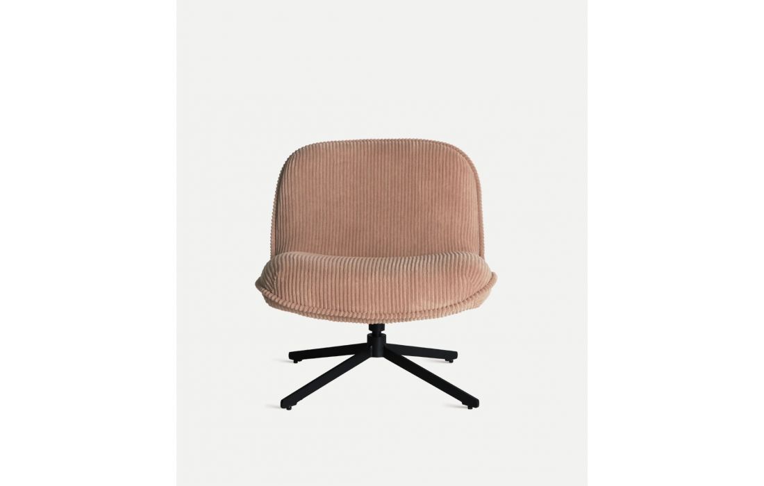 Cadeirão giratória fabricada em ferro e madeira de pinho, estofada em tecidoDestinatário :