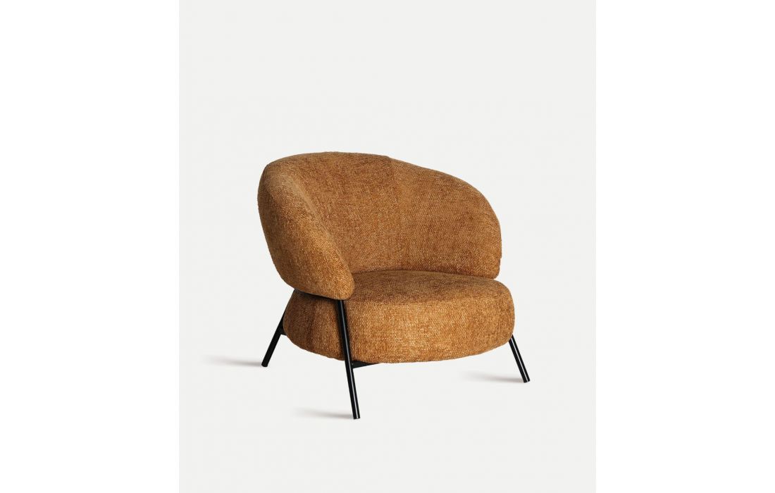 Poltrona de design elegante com estrturo em ferro e madeira de pinho, estofada em tecidoDestinatário :