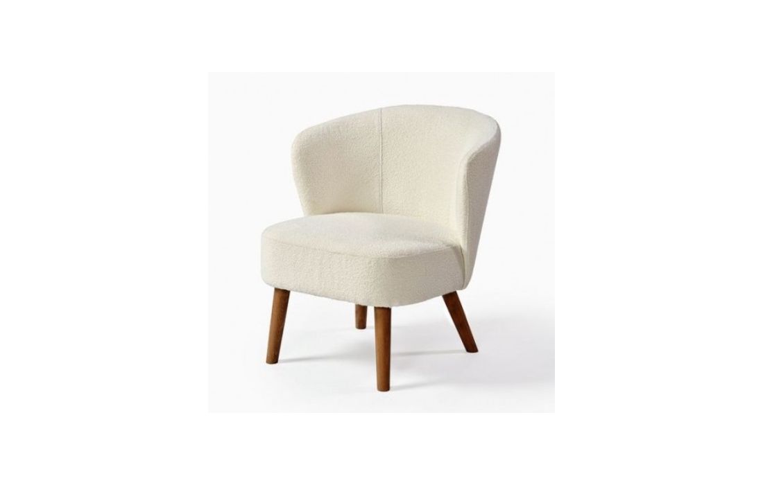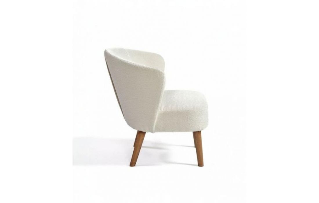 Poltrona baixa estofada em marfim com pés em madeira natural. O design do encosto estende-se para as laterais, proporcionando um ajuste um pouco mais confortável.Destinatário :