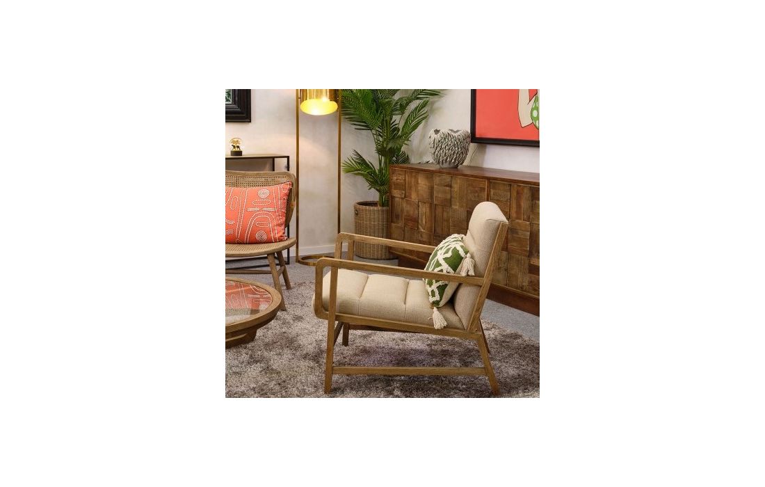 Não dá para resistir, é uma poltrona estofada em linho bege e tem a estrutura em madeira de carvalho. É a peça ideal para criar ambientes de estilo mediterrâneo quente.Destinatário :