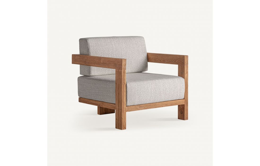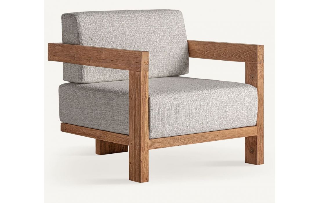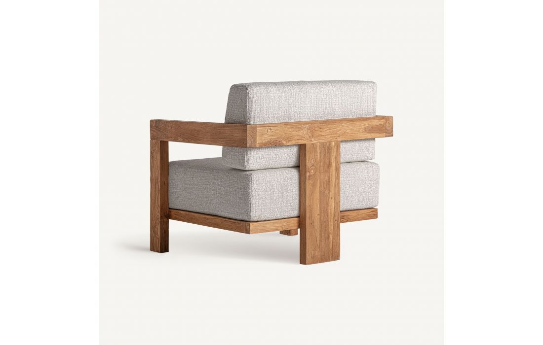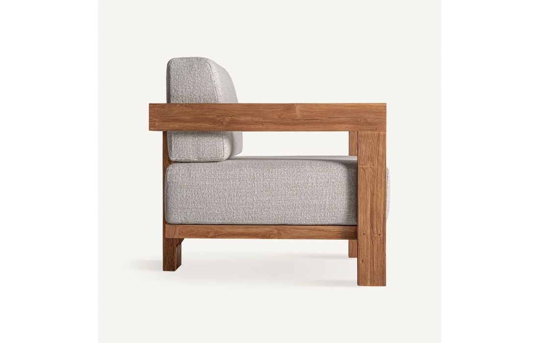 Design sóbrio com um toque exótico. A POLTRONA TESTA combina a força da teca reciclada com um acabamento natural. Uma peça prática, elegante e comprometida com o meio ambiente.