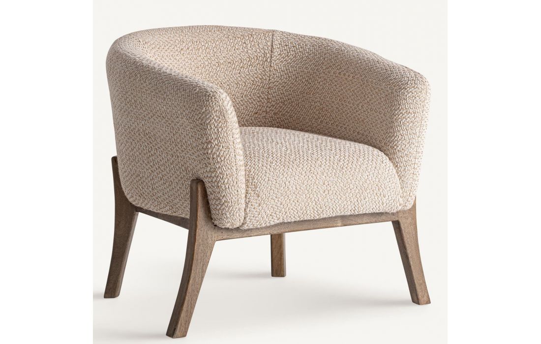 Poltrona de estilo contemporâneo, feita de juta, combinada com madeira de Mango.Dimensões em cm