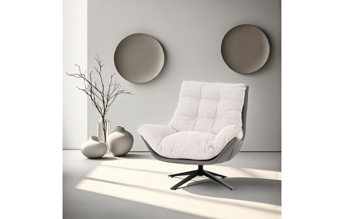 Esta poltrona giratória 360o é uma peça elegante e funcional, projetado para oferecer conforto e estilo em qualquer espaço. O tecido especial é anti-mancha e resistente a arranhões de animais de estimação, garantindo durabilidade.