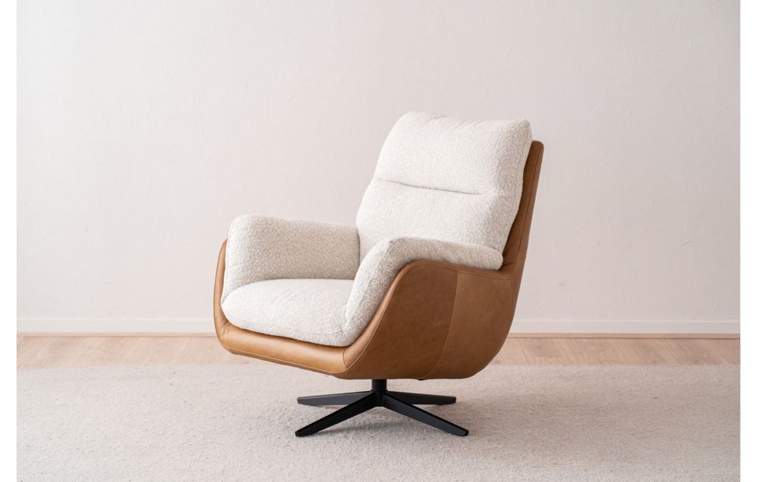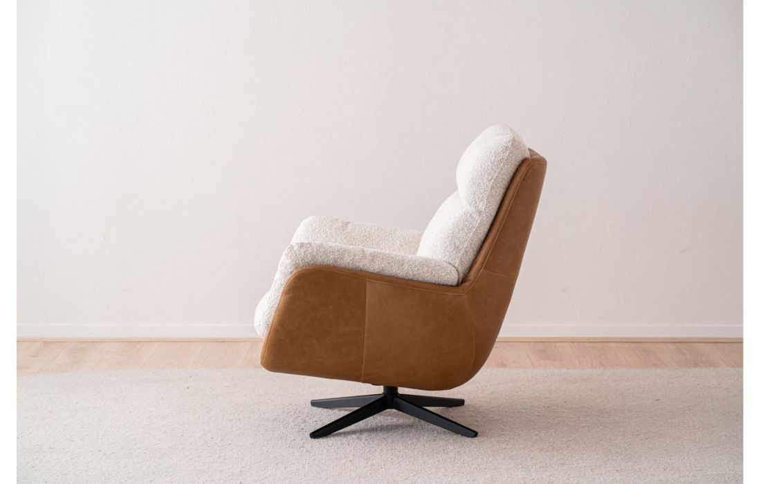 Esta poltrona se destaca por um design que convida ao descanso, graças às suas formas arredondadas e a uma estética onde a sensação de relaxamento é segura.