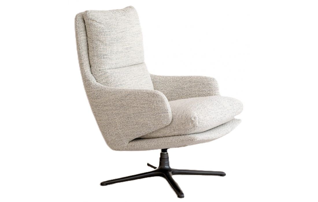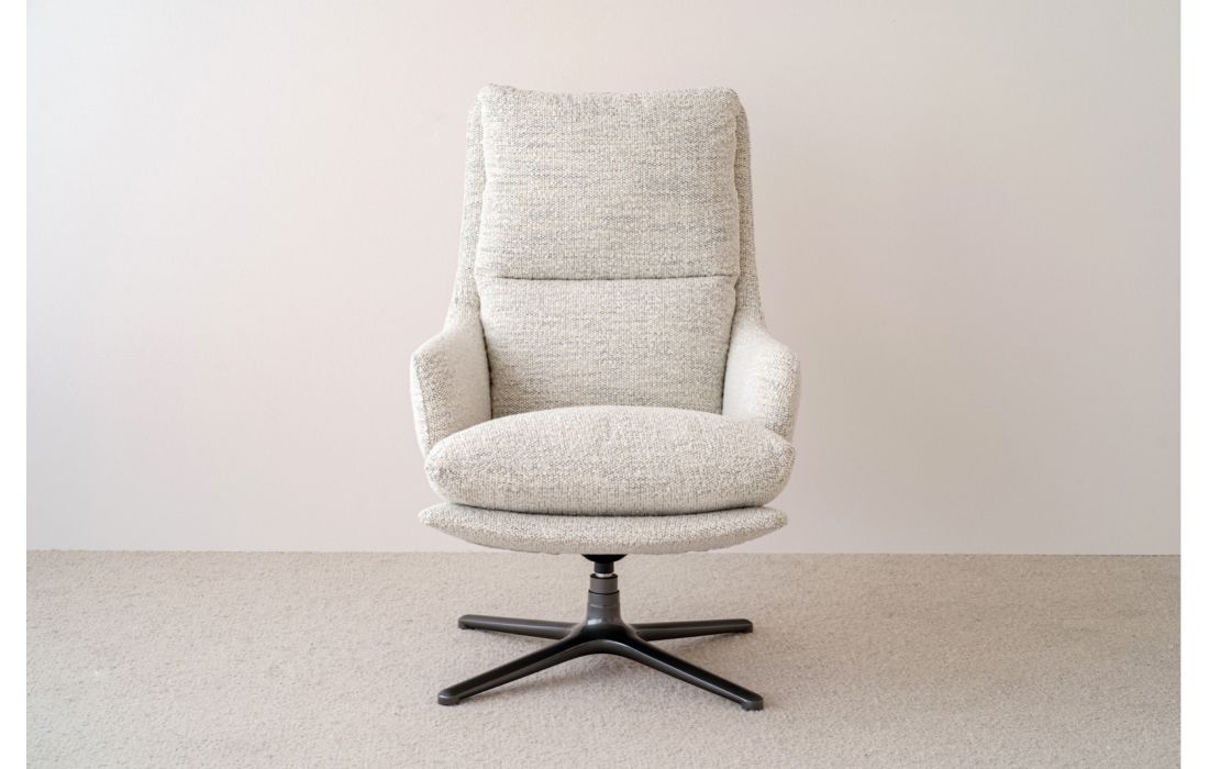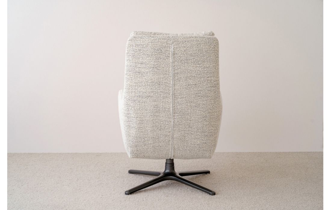 Esta poltrona giratória se destaca por um design simples que convida ao descanso, em um tecido texturizado que a torna uma peça versátil, perfeita para qualquer espaço.