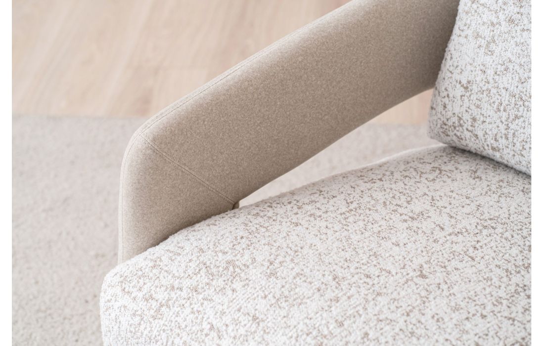 Poltrona de estilo contemporâneo, a estrutura feita em madeira, revestida em tecido, o seu design curvo e apelativo permite uma fácil integração com diversas gamas de cor e estilos de decoração. Disponível em várias tonalidades.