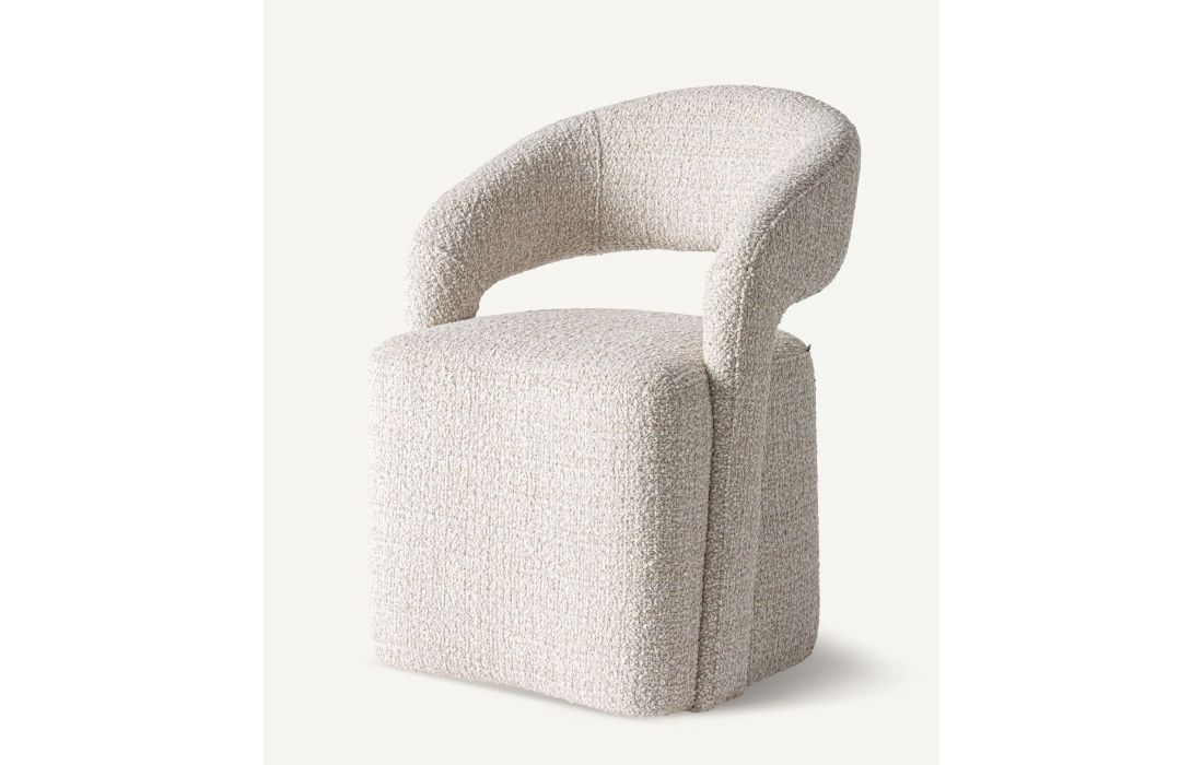 Esta poltrona em madeira de pinheiro, equilibra volume e leveza visual, tornando-se uma peça perfeita para salas de jantar, áreas de lounge ou projetos de contrato de alto nível.