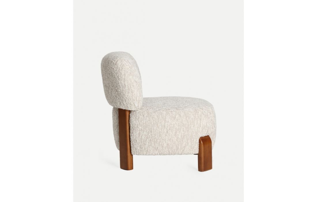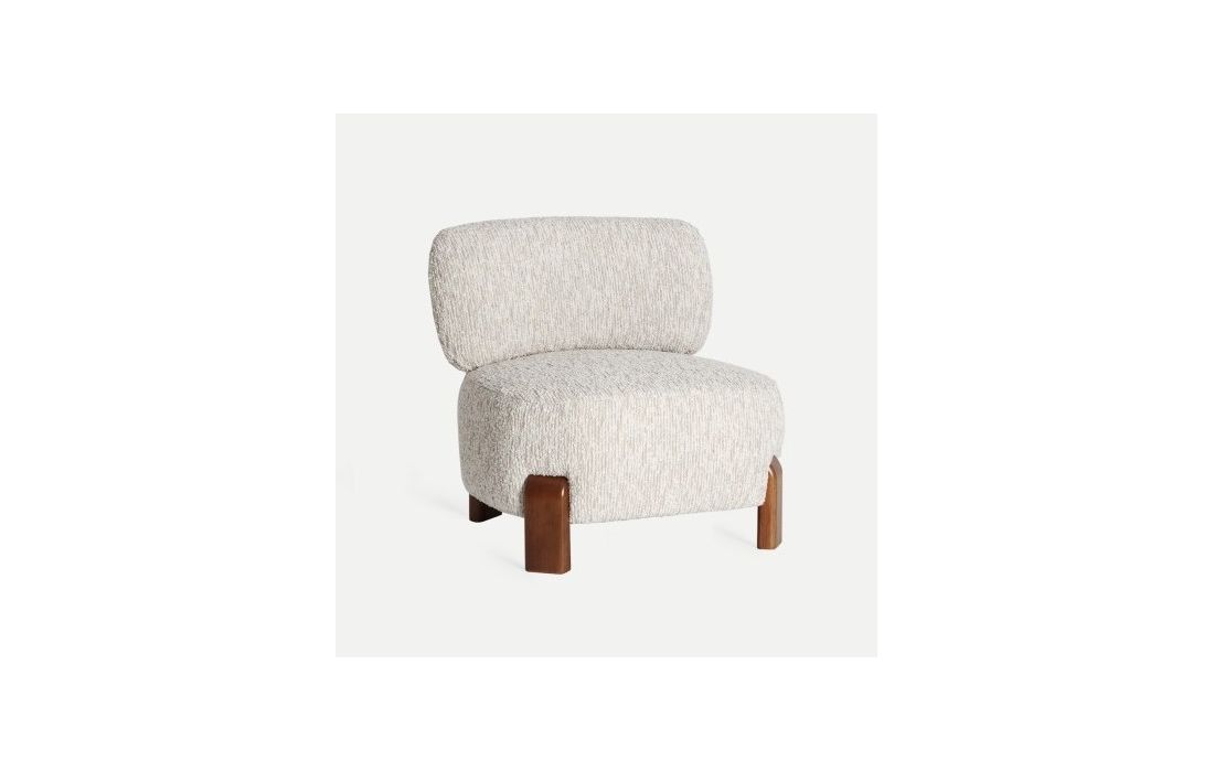 Esta poltrona com estrutura em madeira e estofamento em tecido prioriza o volume e a sensação de conforto, o seu design com formas arredondadas e uma presença serena, foi concebido para criar recantos de descanso com uma forte identidade.