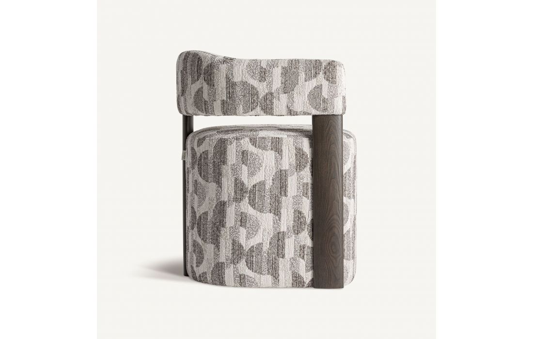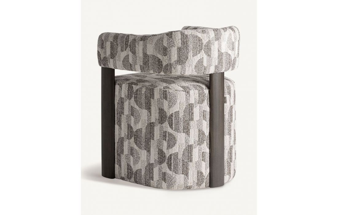 Esta poltrona de estilo contemporâneo combina elegância e conforto através de um design sofisticado. A estrutura em madeira de freixo, com acabamento escuro, confere solidez e um contraste harmonioso.