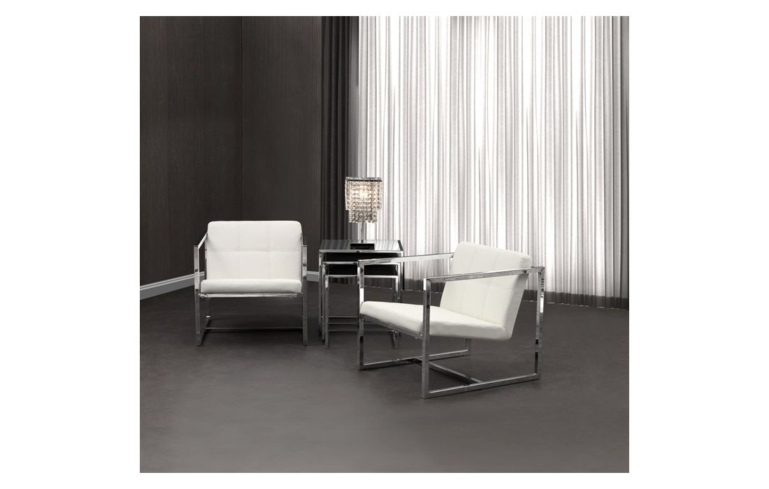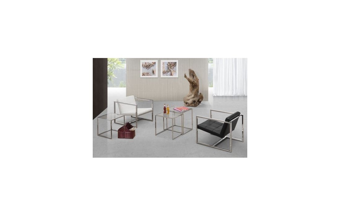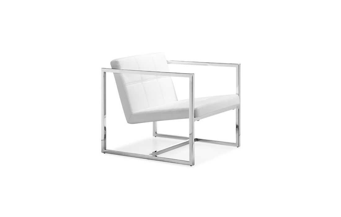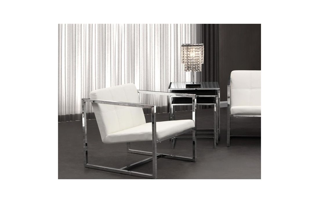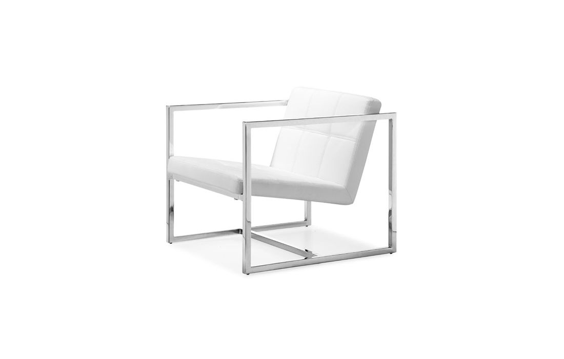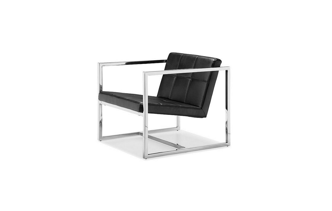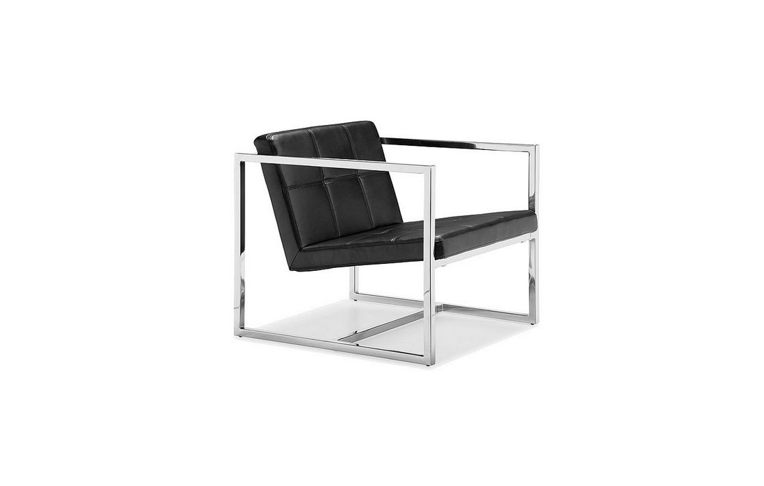 Poltrona moderna com armação de aço inoxidável e estofo em pele sintética