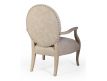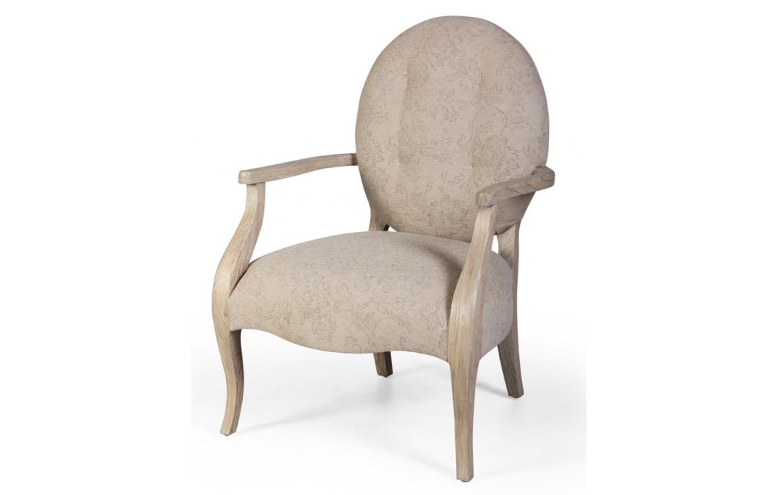 Cadeirão clássico com estrutura em madeira, revestido em tecido.