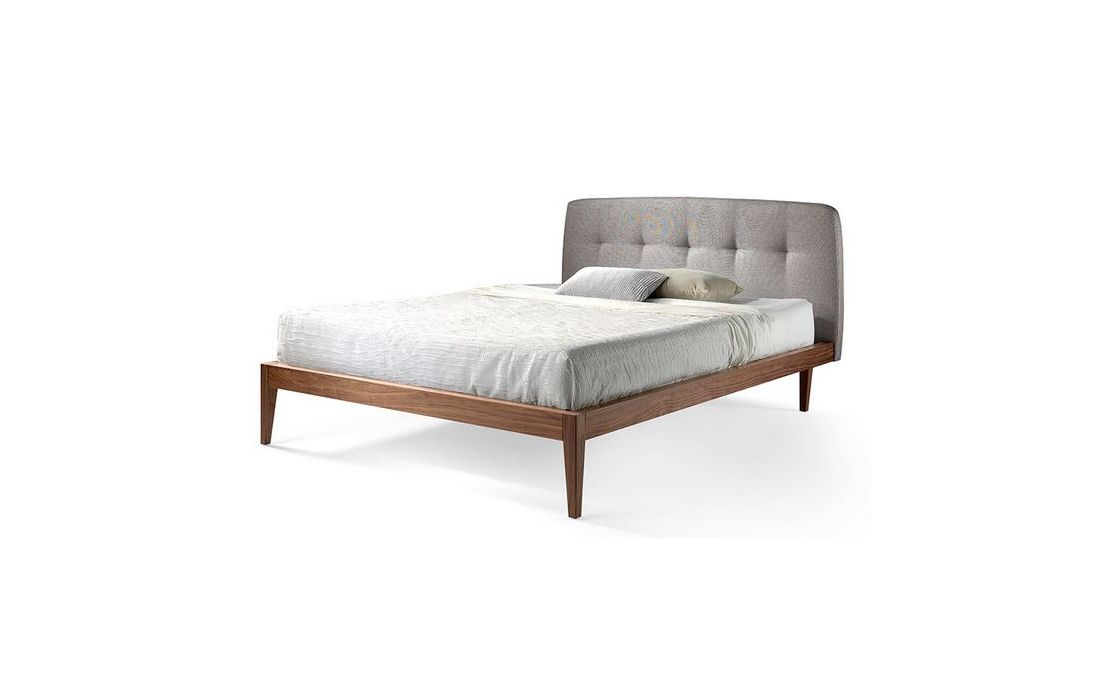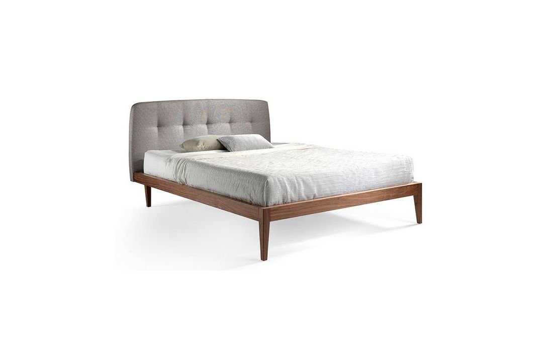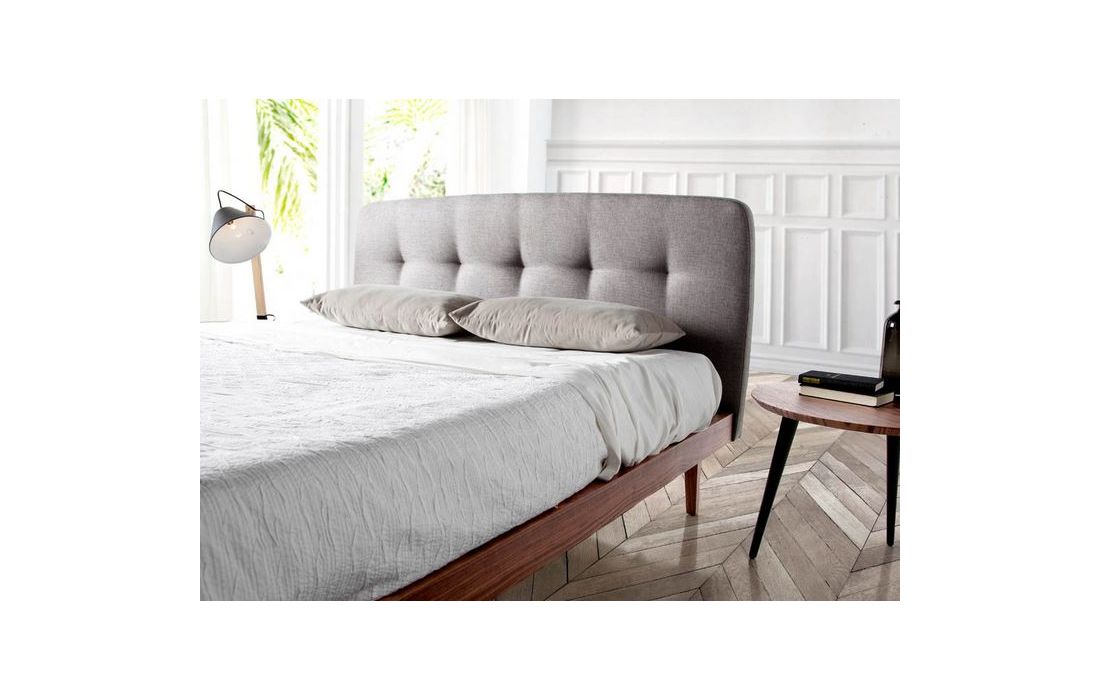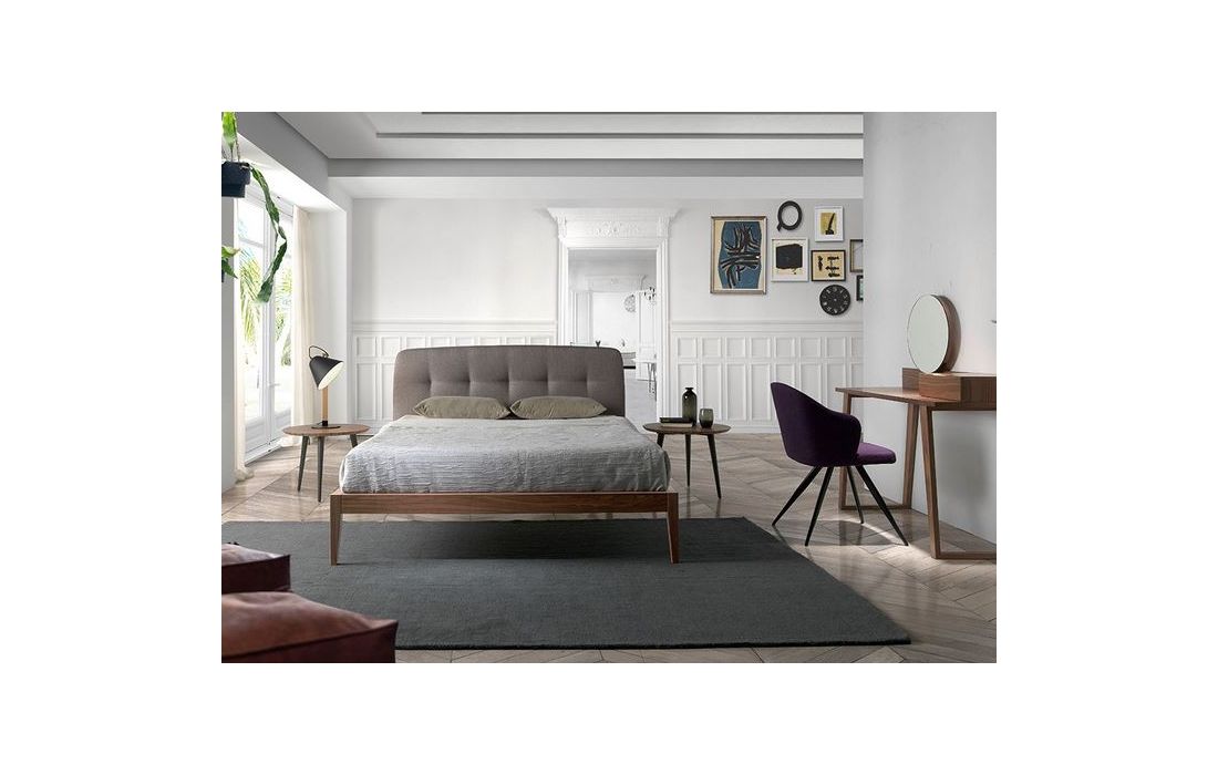 Cama com estrutura em madeira de nogueira, nos vários revestimentos possíveis.
