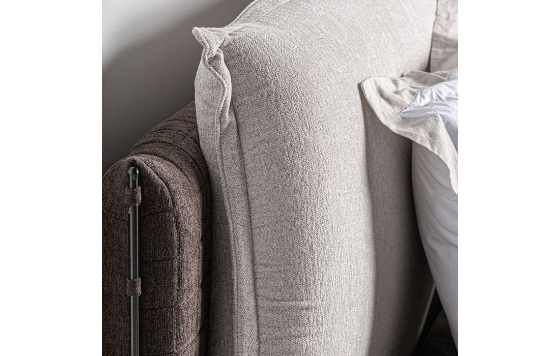 Cama com linhas modernas e minimalistas, estrutura em madeira de pinho e estofada em tecidoDestinatário :