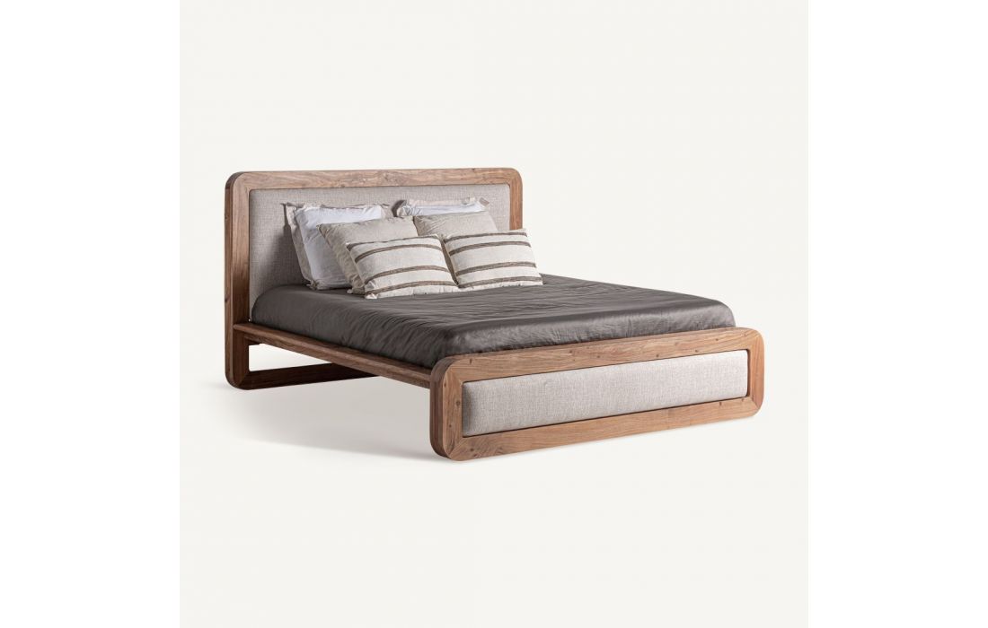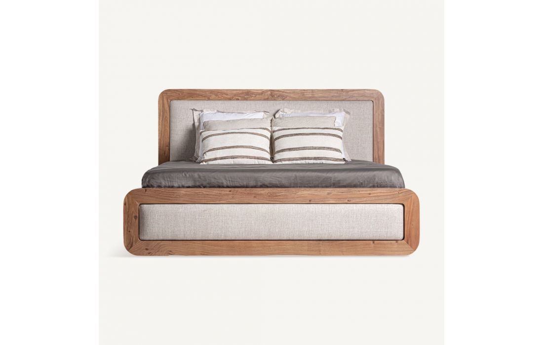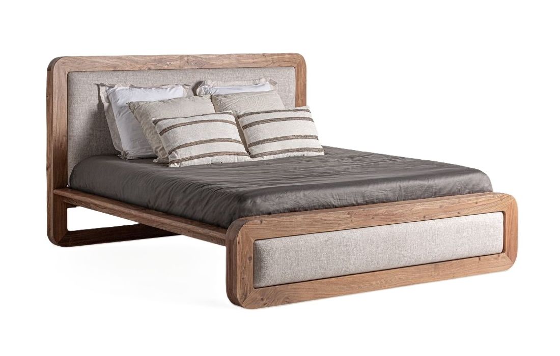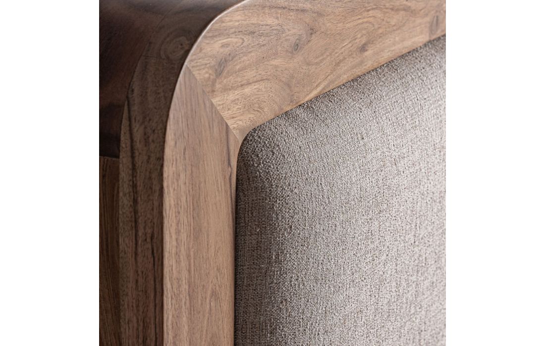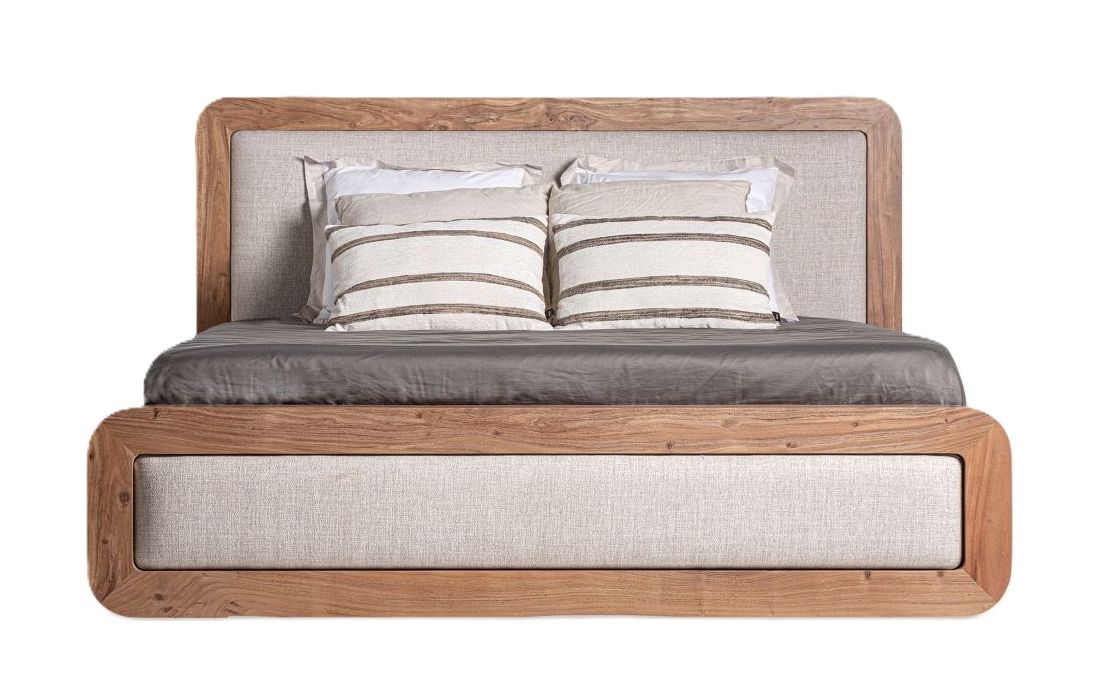 Cama feita em madeira de acácia e estofada em acrílico bege mesclado e poliéster, combina uma estrutura firme com um tecido macioDestinatário :