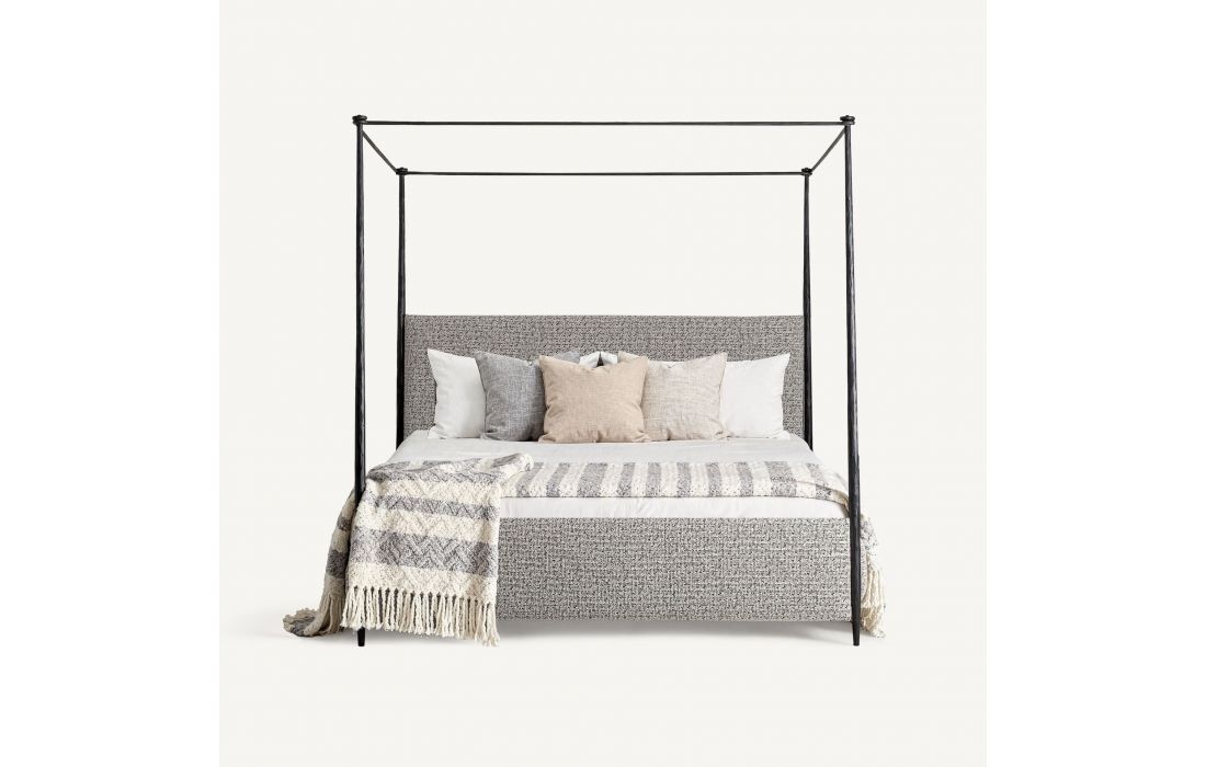 Esta cama propõe uma leitura contemporânea de descanso, onde a estrutura de ferro preto é combinada com tecdo para criar uma atmosfera serena e acolhedora. Seu design leve e arquitetônico traz personalidade sem sobrecarregar o espaço.Destinatário :