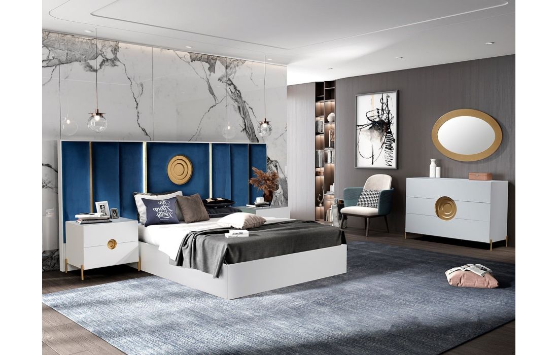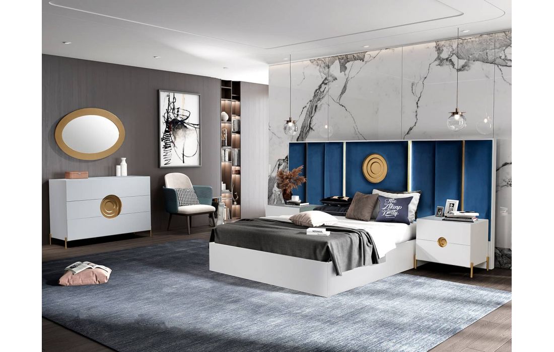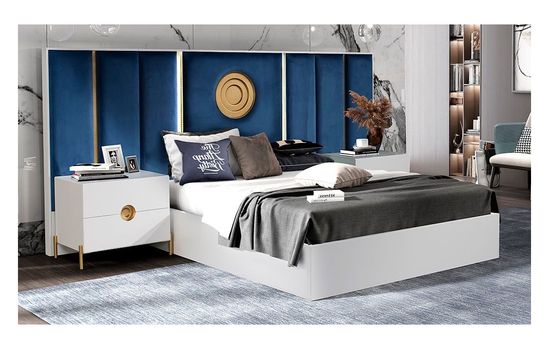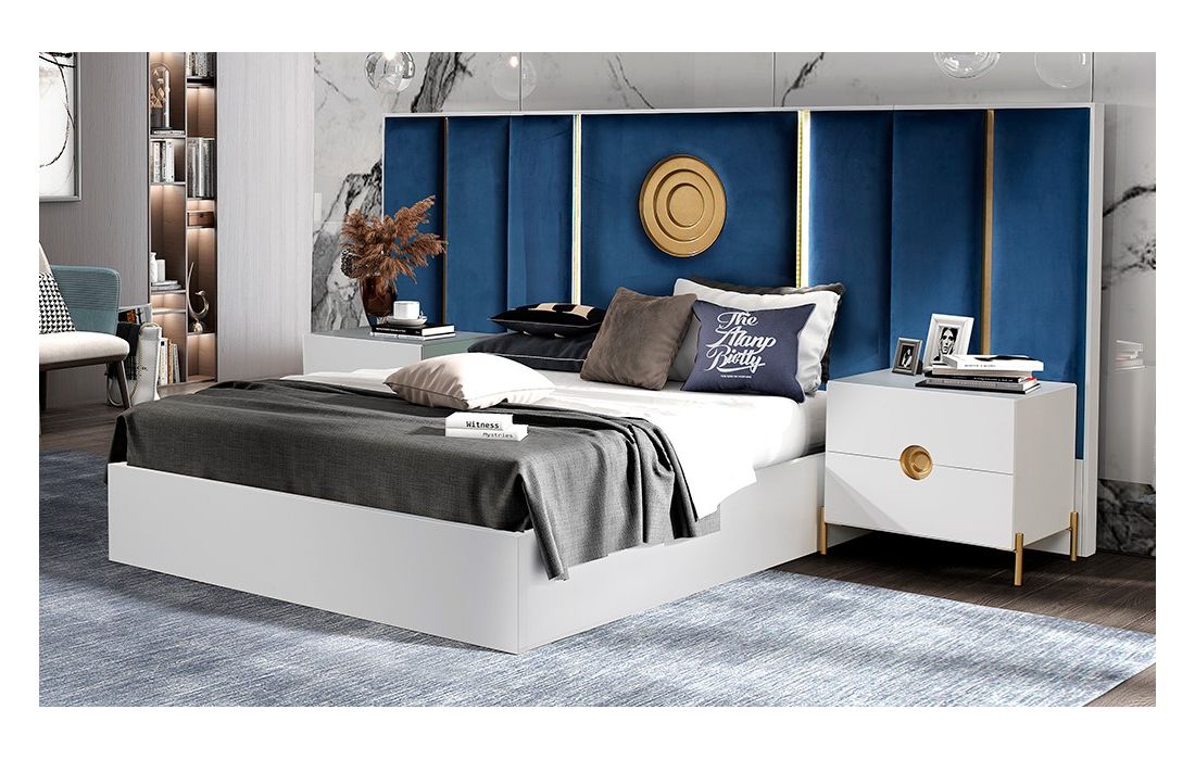 Acabamento igual à imagem: Lacado branco mate. Estofo da cama Paris
