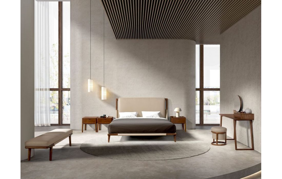 Cama moderna com cabeceira original em pele sintética e estrutura em madeira na cor nogueira escura, uma peça-chave para o seu quarto, irá acrescentar um estilo elegante e aconchegante. Cama compatível com colchão de 180 x 200 cmDestinatário :
