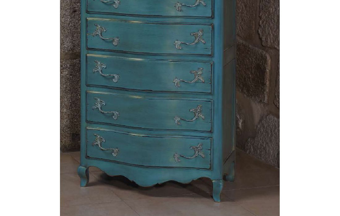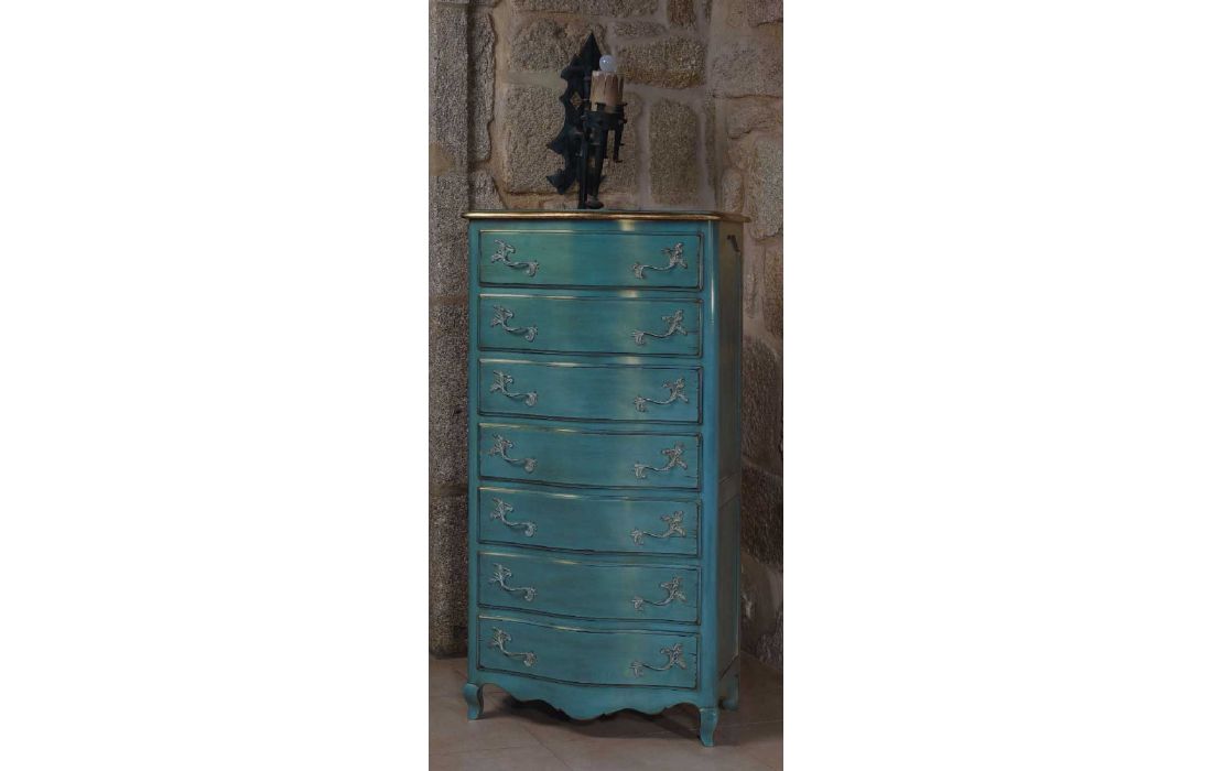Camiseiro alto com 7 gavetas, design provençal, pormenor em folha de ouro e com possibilidade de vários acabamentos.