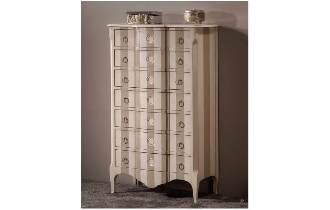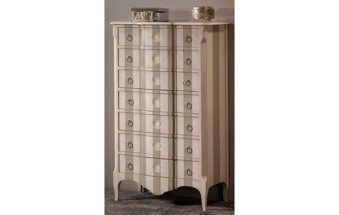 Camiseiro alto com 7 gavetas, design provençal com possibilidade de vários acabamentos.