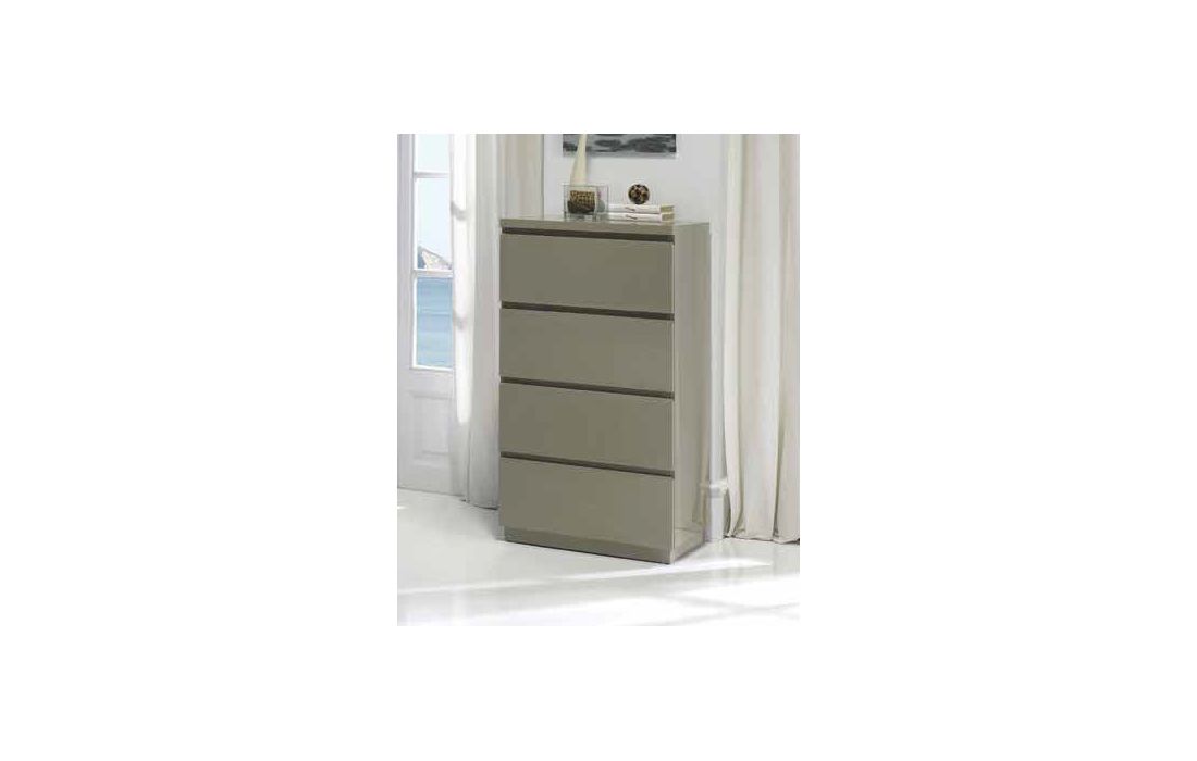 Camiseiro alto com 4 gavetas, em branco, moca ou prateado.