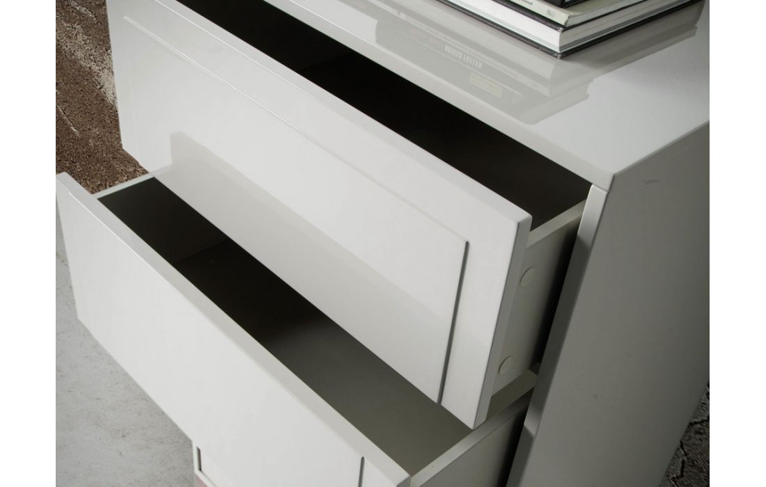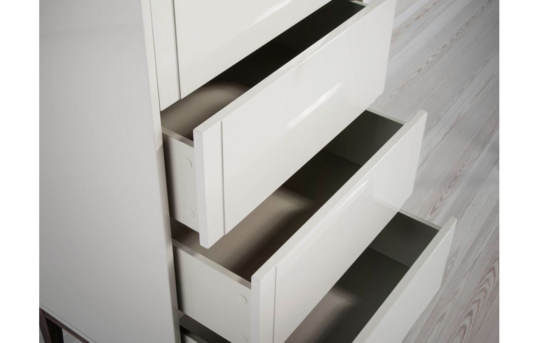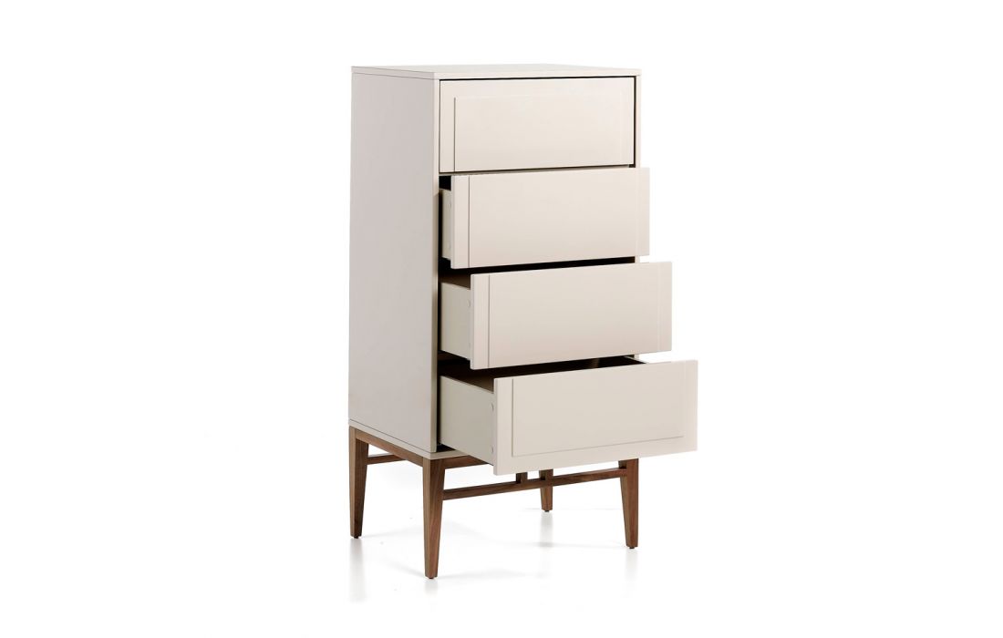 Camiseiro alto com 4 gavetas disponivel nos vários revestimentos possíveis com pés em madeira de nogueira.