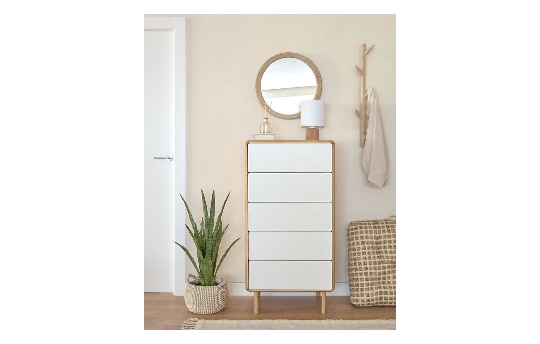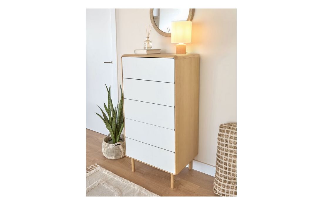 Camiseiro alto com 5 gavetas feito em madeira maciça de freixo e mdf