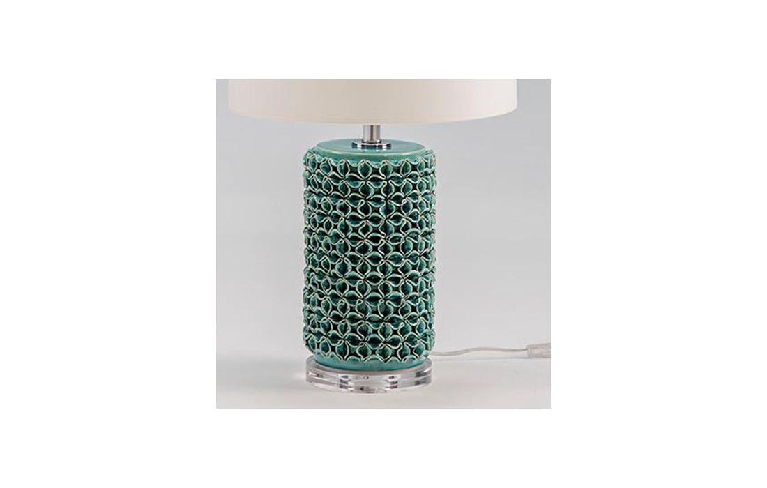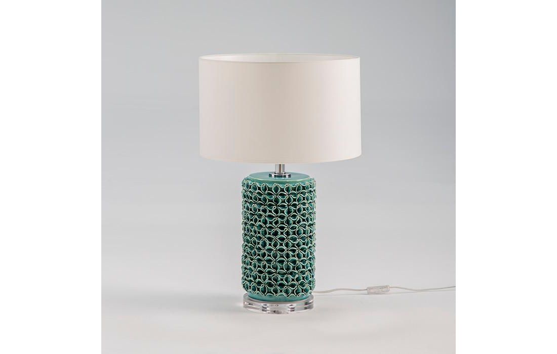 Candeeiro de mesa sem abajur em cerâmica de cor verde.