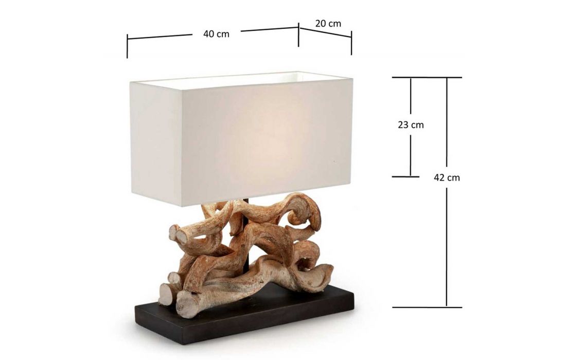 Especificações do Produto Madeira e tecido Lâmpada -E-27 60W não incluída Não fazemos qualquer alteração ao produto Este produto necessita de montagem Manutenção e Limpeza Limpar com um pano seco Para tirar manchas deve usar um pano húmido e de seguida passar um pano seco Legenda de medidas (C) Comprimento (P) Profundidade(A) Altura