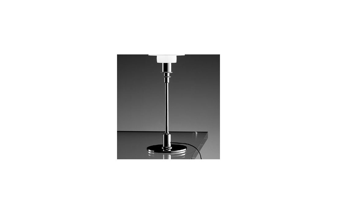 Candeeiro de mesa em metal cromado e vidro branco.Destinatário :