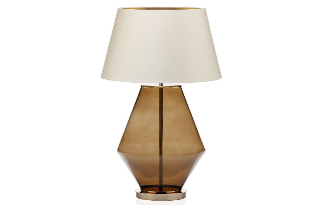 Uma peça elegante em que a fusão do vidro com os metais a ouro permitem que este candeeiro se torne peça chave em qualquer lugar. O abat-jour com tela no interior a ouro, permite que a luz difundida torne o seu ambiente mais caloroso e reconfortante.
