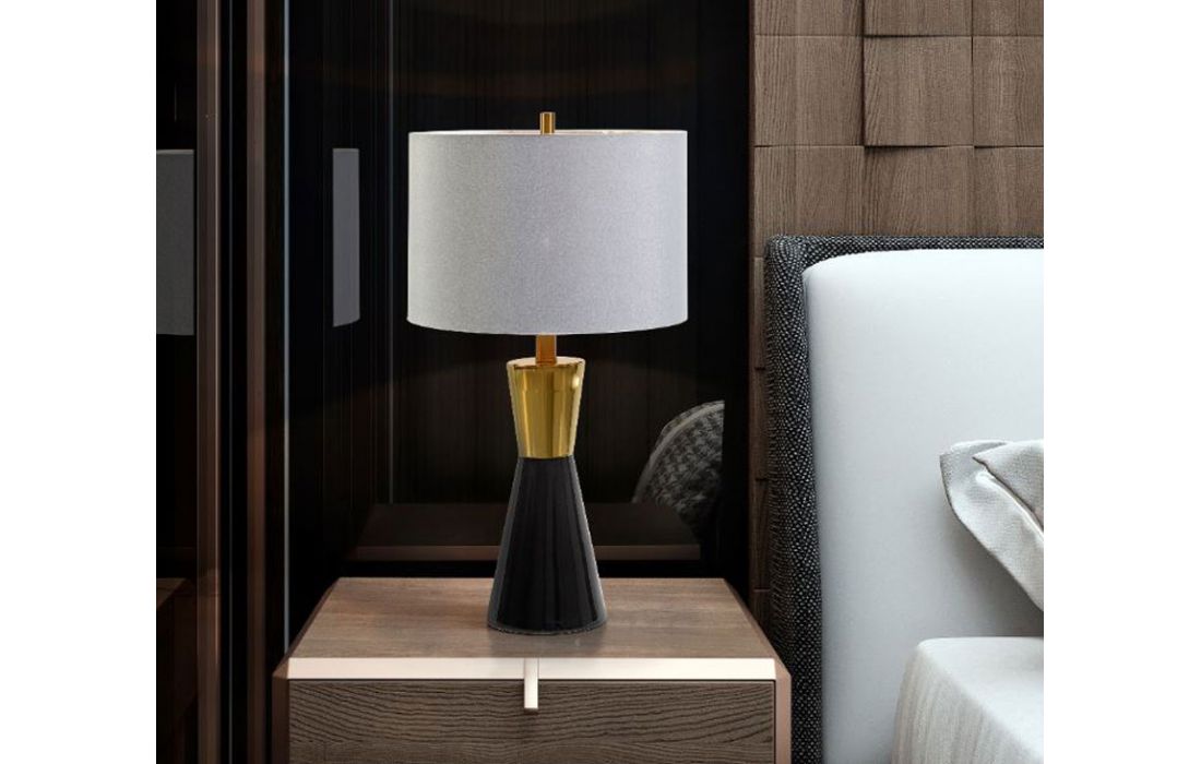 Candeeiro de mesa em cerâmica e abajour em tecido.