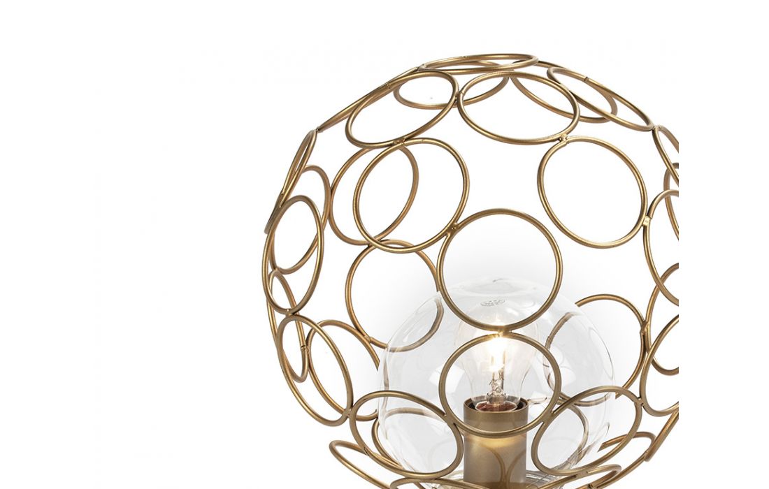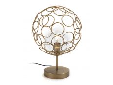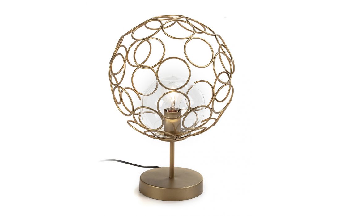 Prazo de entrega: 5-10 diasCandeeiro de mesa de 1 luz em metal com acabamento em dourado e detalhes em verniz preto brilhante. Tela cónica com aplicações de nácar.