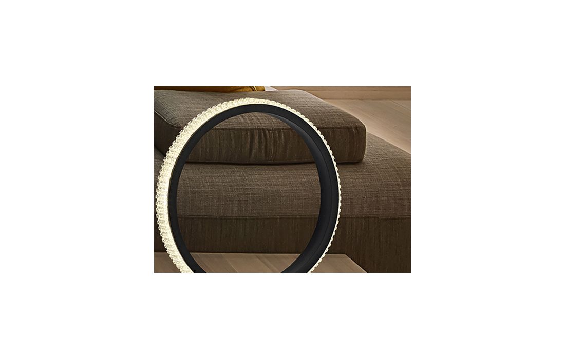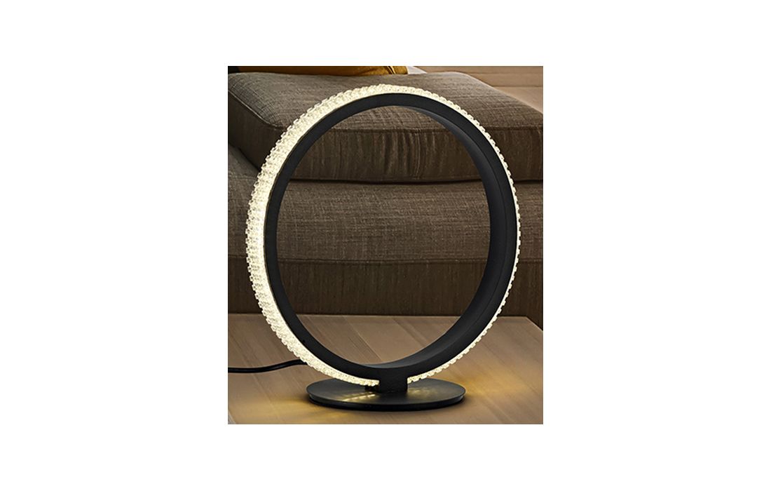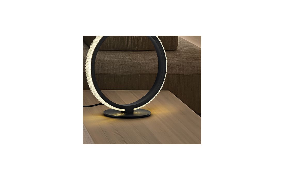 Candeeiro de mesa em metal e alumúnio preto mate arenado, aro com difusor de peças de acrílico transparente