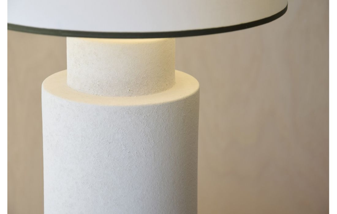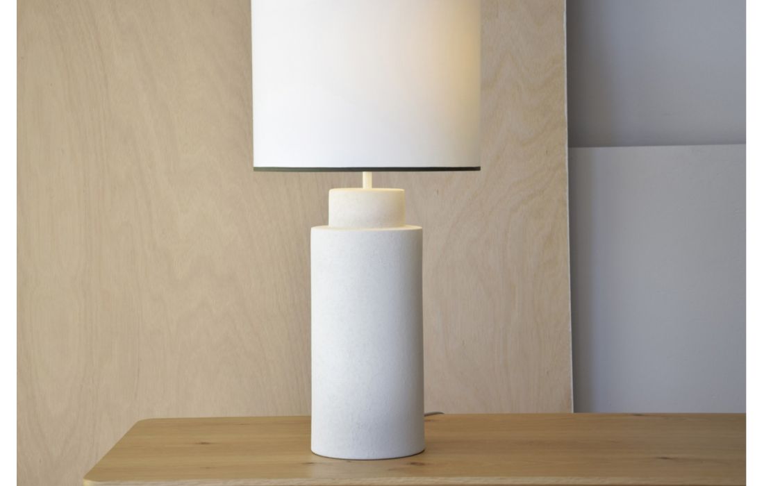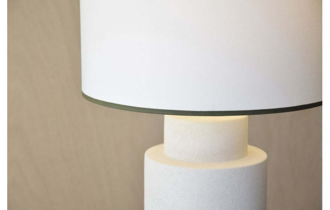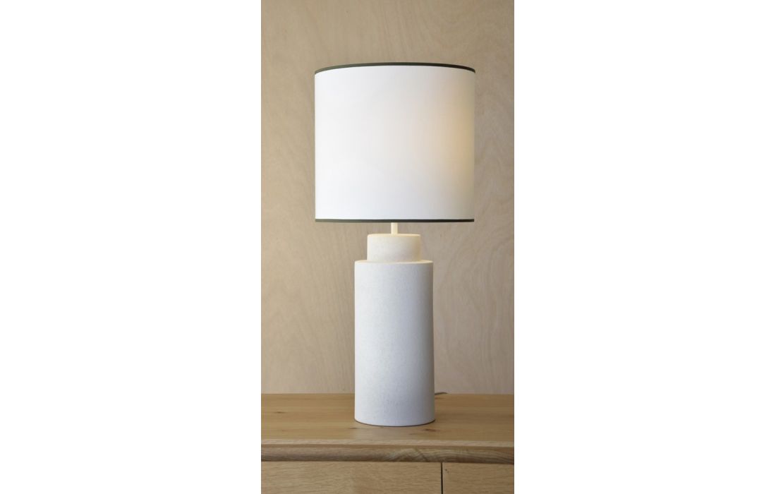 Candeeiro de mesa com formato cilíndrico feito em ceramica na cor brancoDestinatário :