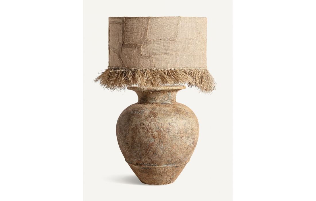 Candeeiro de mesa estilo vintage feito em cerâmica e juta em tons de castanhoDestinatário :