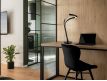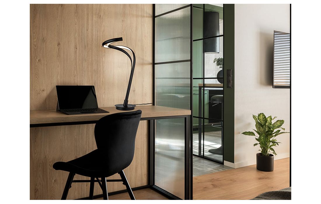 Candeeiro de mesa em metal e alumínio, acabamento preto mate arenado. Difusor opalino de silicone.Destinatário :