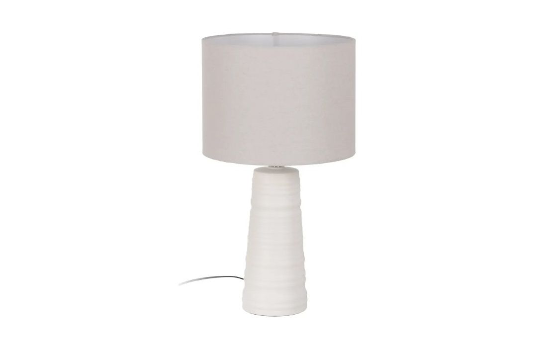 Candeeiro de mesa com base cerámica e abajur em tecido de linho.Destinatário :