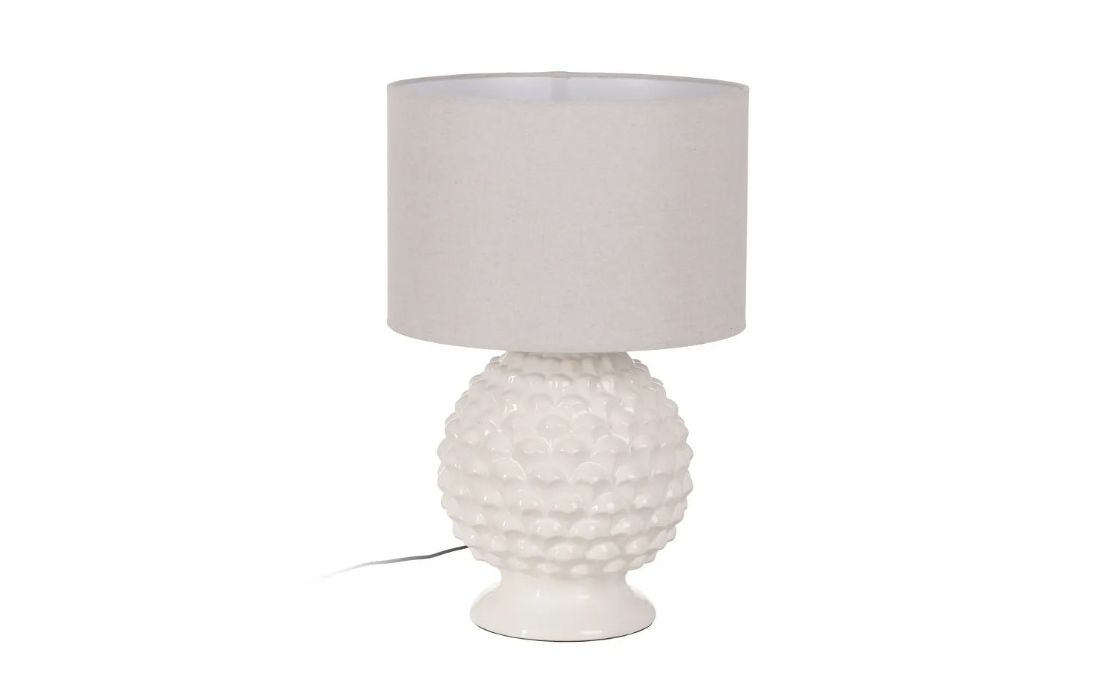 Candeeiro de mesa com base cerámica e abajur em tecido de linho.Destinatário :