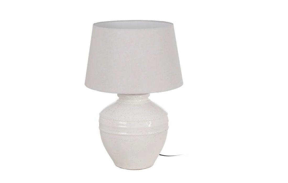 Candeeiro de mesa com base cerámica e abajur em tecido de linho.Destinatário :