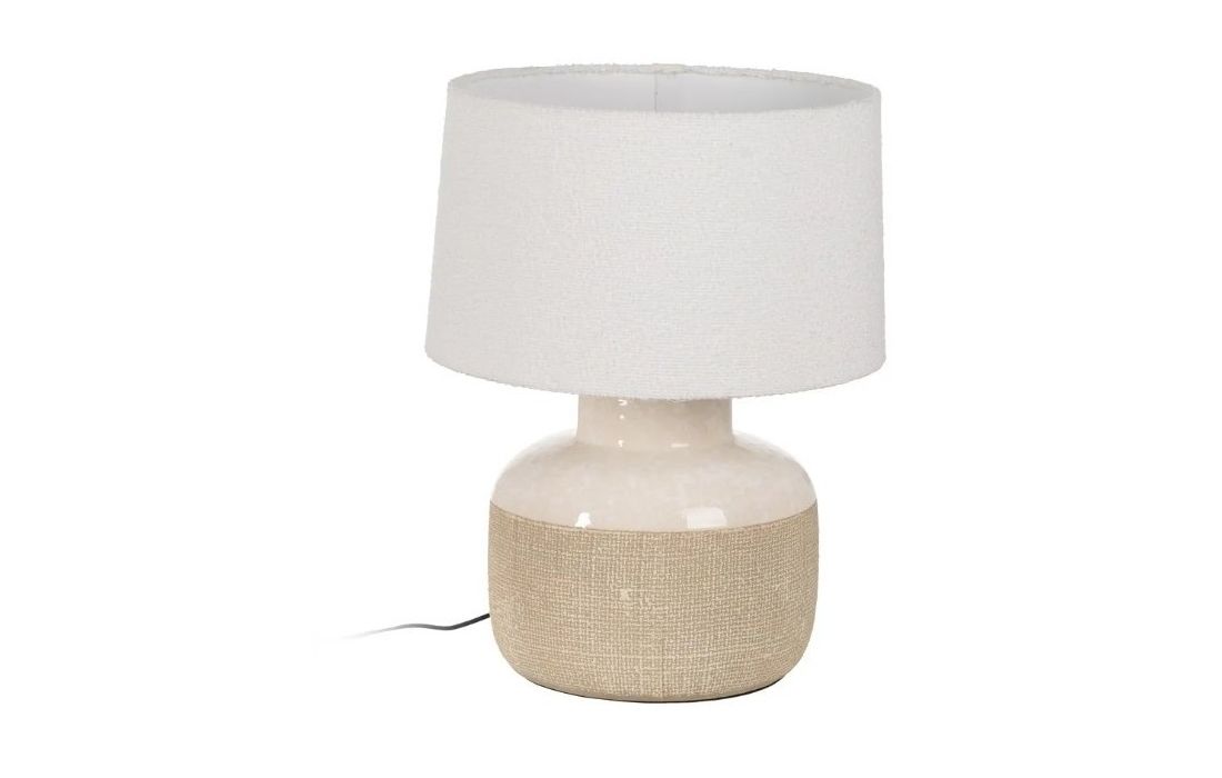 Candeeiro de mesa com base cerámica e abajur em tecido de linho.Destinatário :