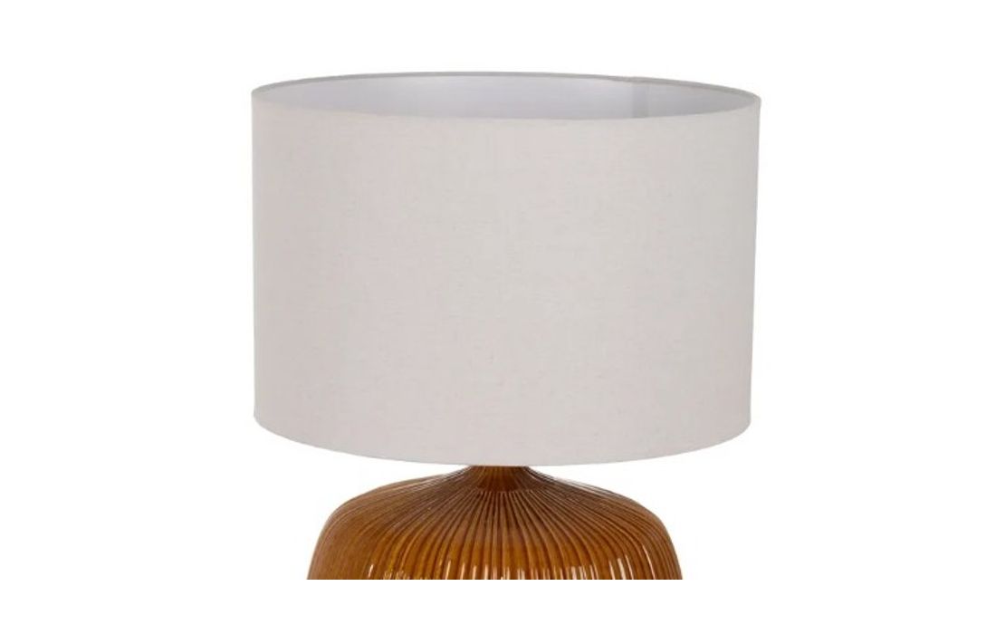 Candeeiro de mesa com base cerámica e abajur em tecido de linho.Destinatário :