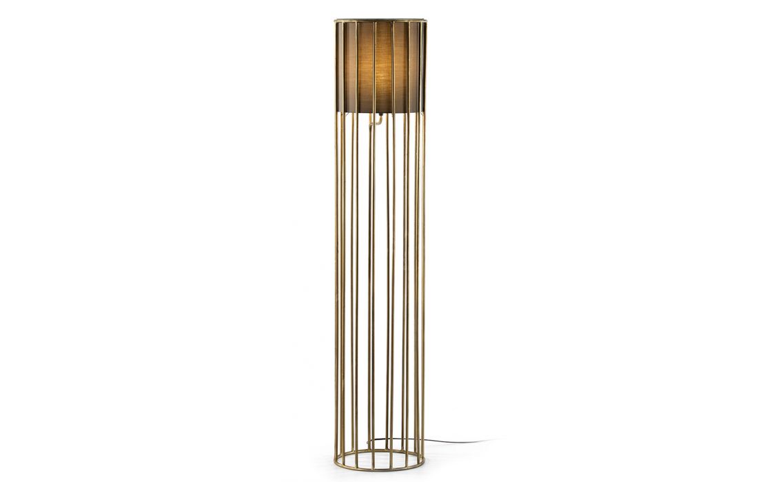 Candeeiro de pé em tons de dourado, torna este candeeiro moderno e elegante, o seu abat-jour escuro torna a peça mais discreta, podendo assim ser adaptado a diversos espaços e decorações.Dimensões em cmD 45 A 180 Prazo de Entrega10 a 15 dias