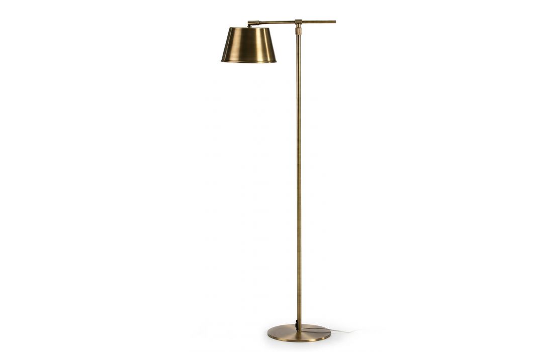 Candeeiro de pé em tons de dourado, torna este candeeiro moderno e elegante, o seu abat-jour escuro torna a peça mais discreta, podendo assim ser adaptado a diversos espaços e decorações.Dimensões em cmD 45 A 180 Prazo de Entrega10 a 15 dias