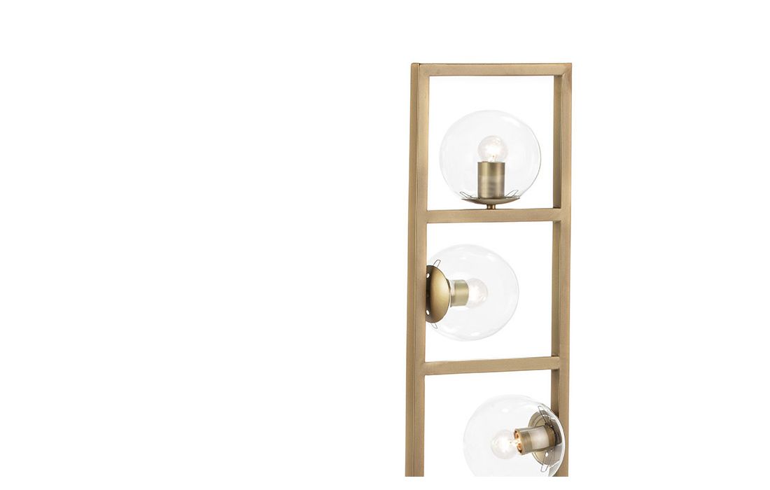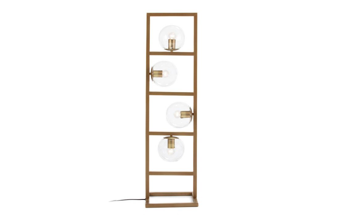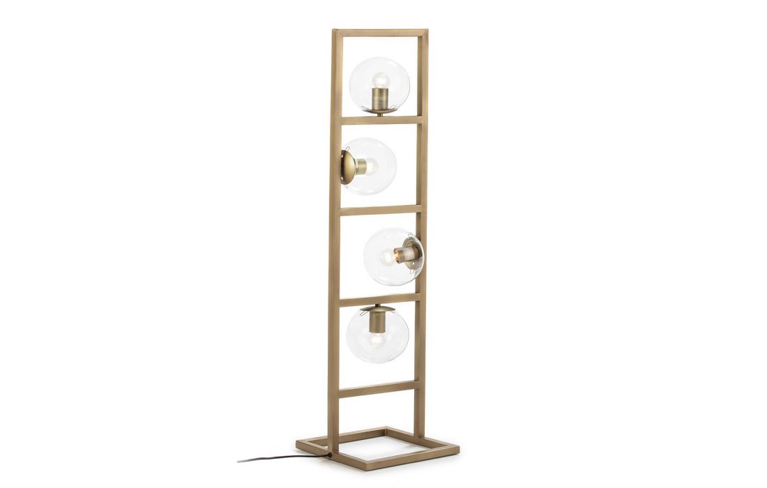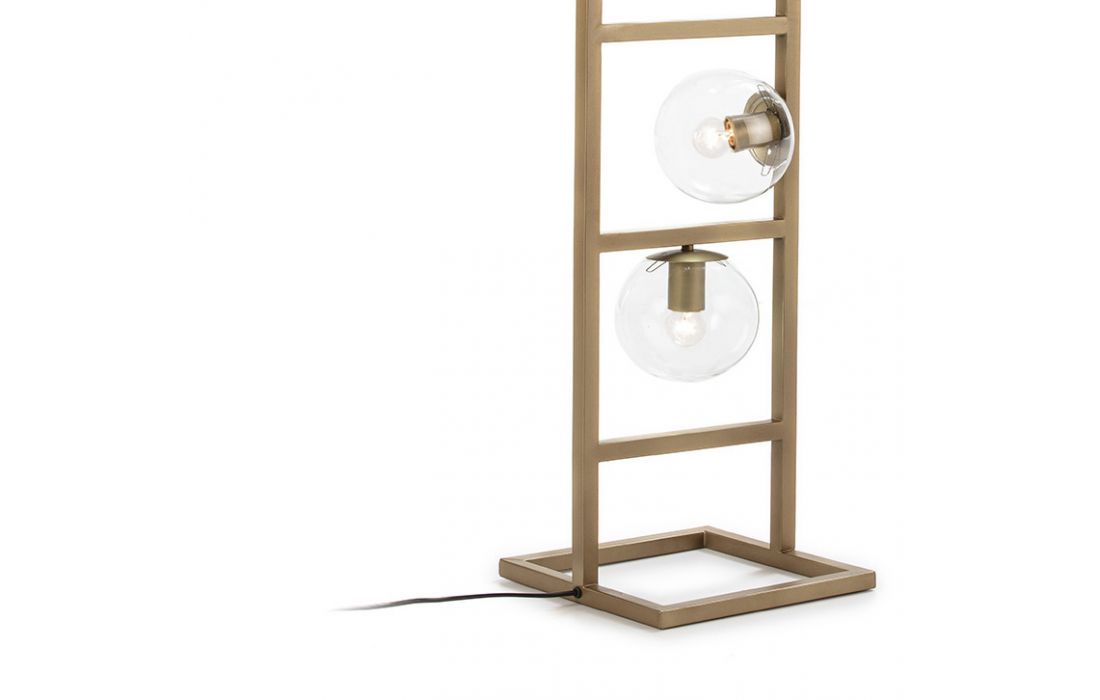 Candeeiro de pé em tons de dourado, torna este candeeiro moderno e elegante, o seu abat-jour escuro torna a peça mais discreta, podendo assim ser adaptado a diversos espaços e decorações.Dimensões em cmD 45 A 180 Prazo de Entrega10 a 15 dias