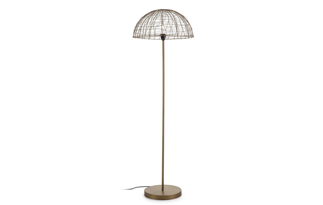 Candeeiro de pé em tons de dourado, torna este candeeiro moderno e elegante, o seu abat-jour escuro torna a peça mais discreta, podendo assim ser adaptado a diversos espaços e decorações.Dimensões em cmD 45 A 165 Prazo de Entrega10 a 15 dias