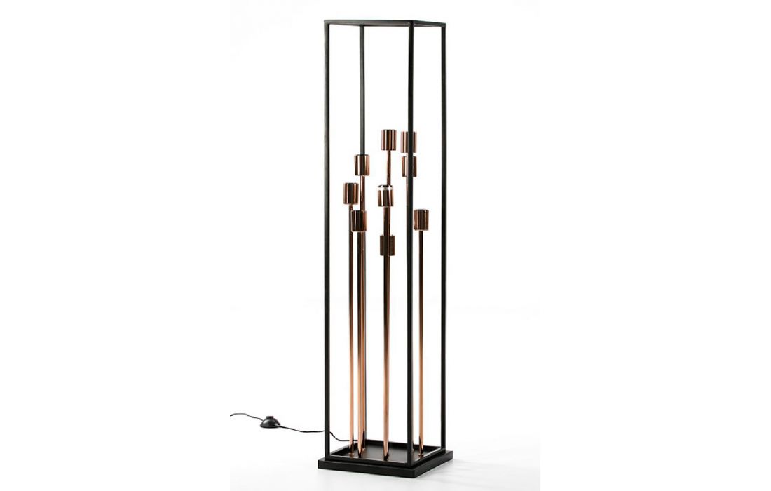 Candeeiro de pé em tons de dourado, torna este candeeiro moderno e elegante, o seu abat-jour escuro torna a peça mais discreta, podendo assim ser adaptado a diversos espaços e decorações.Dimensões em cmD 45 A 165 Prazo de Entrega10 a 15 dias