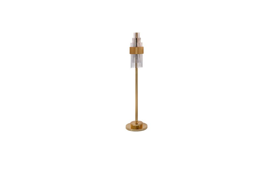 Candeeiro de pé em tons de dourado, torna este candeeiro moderno e elegante, o seu abat-jour escuro torna a peça mais discreta, podendo assim ser adaptado a diversos espaços e decorações.Dimensões em cmD 45 A 180 Prazo de Entrega10 a 15 dias